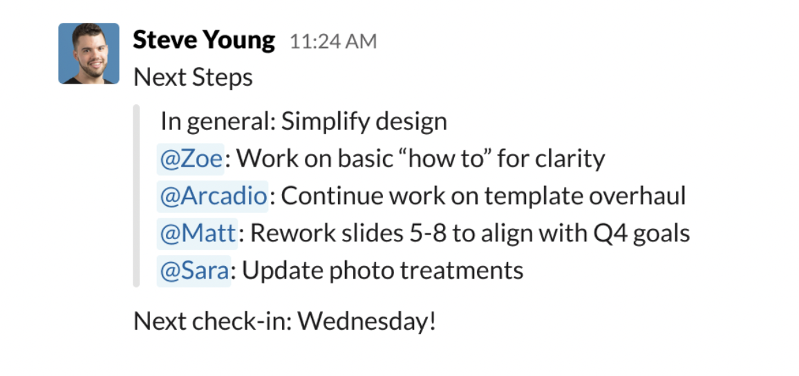 @usernamewill allow you to tag someone directly. Especially on channels, it will notify the user as most users set no notifications for channel messages. And it will also ensure/allow you to add if that colleague is not in that channel. If you want to ping everyone in the channel, use@channelcommand. If you just want to ping the ones that are not away, you can use@herecommand.